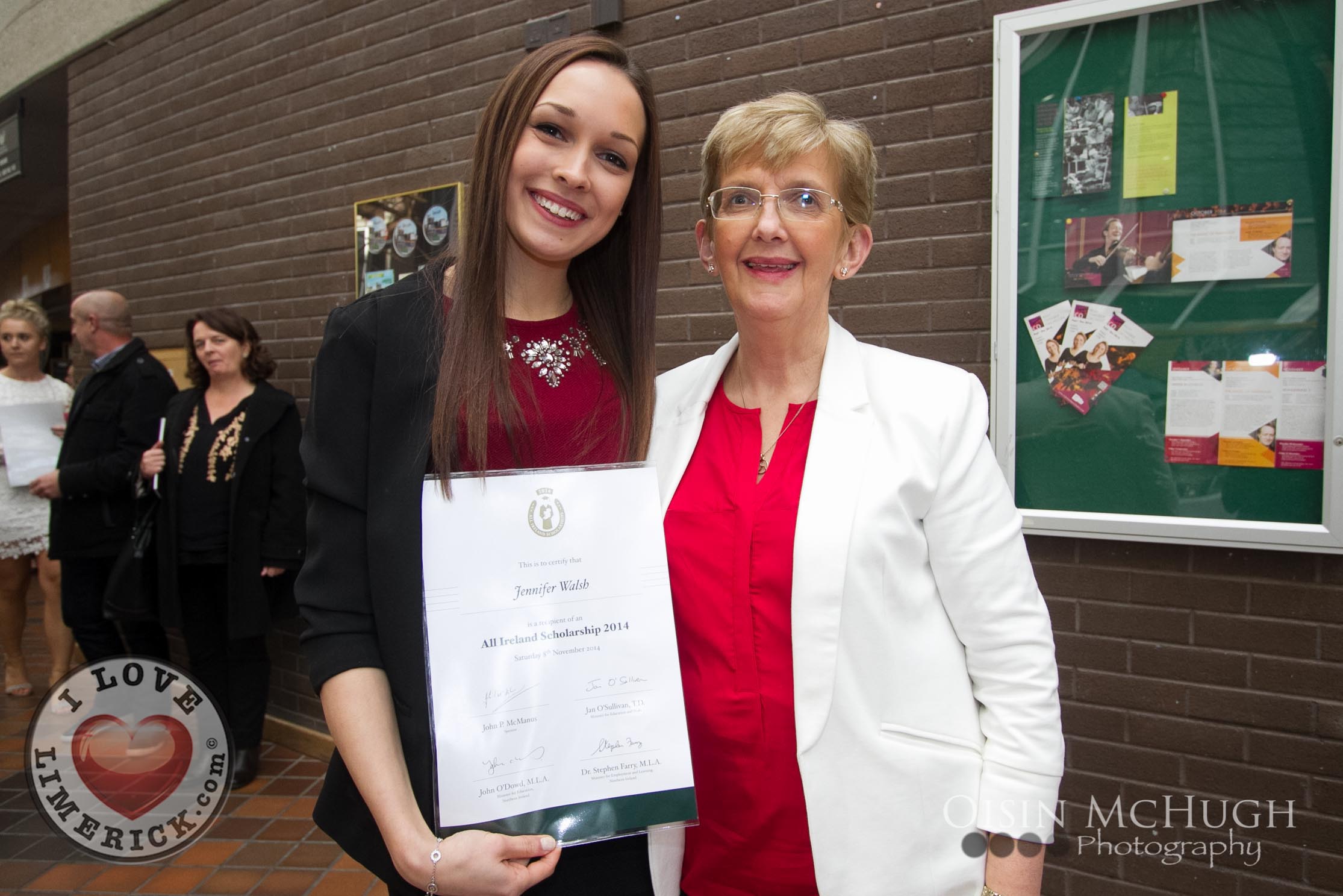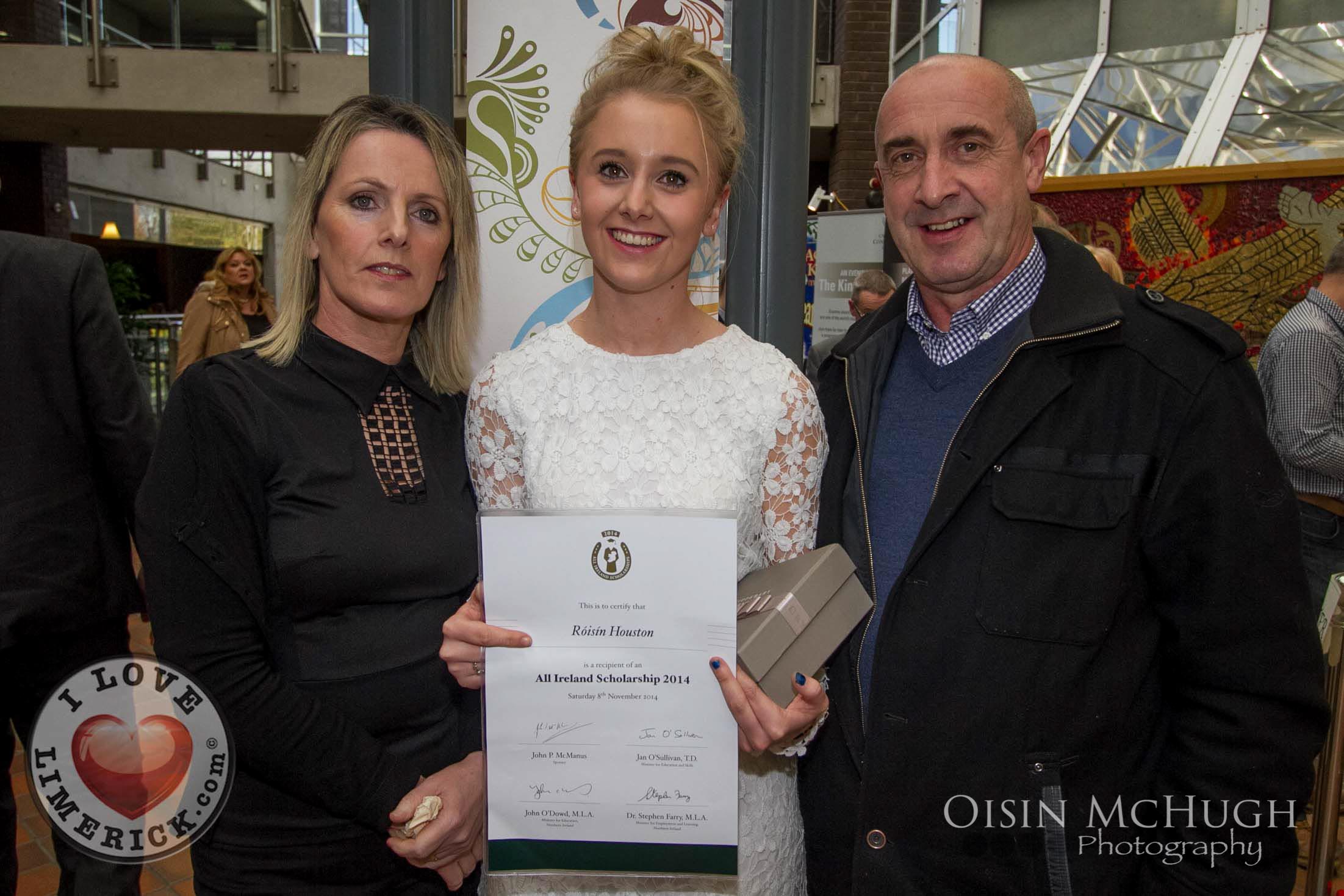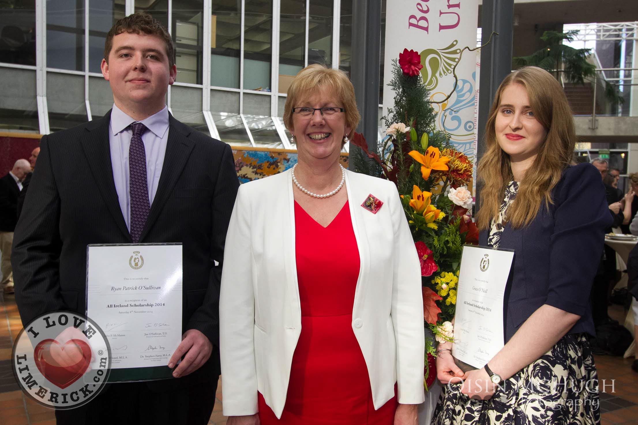 Winners of the 2014 All Ireland Scholarships were officially recognised by the Republic of Ireland Soccer Manager, Martin O’Neill and the Minister for Education & Skills, Jan O’Sullivan TD, at an awards ceremony today Saturday 8th November, 2014 at the University of Limerick. Jan O’Sullivan TD and the Minister for Employment and Learning, Northern Ireland, Dr Stephen Farry presented 126 highly talented students from the North and South with a third-level scholarship award.