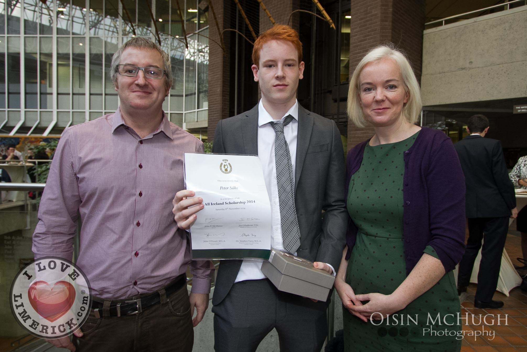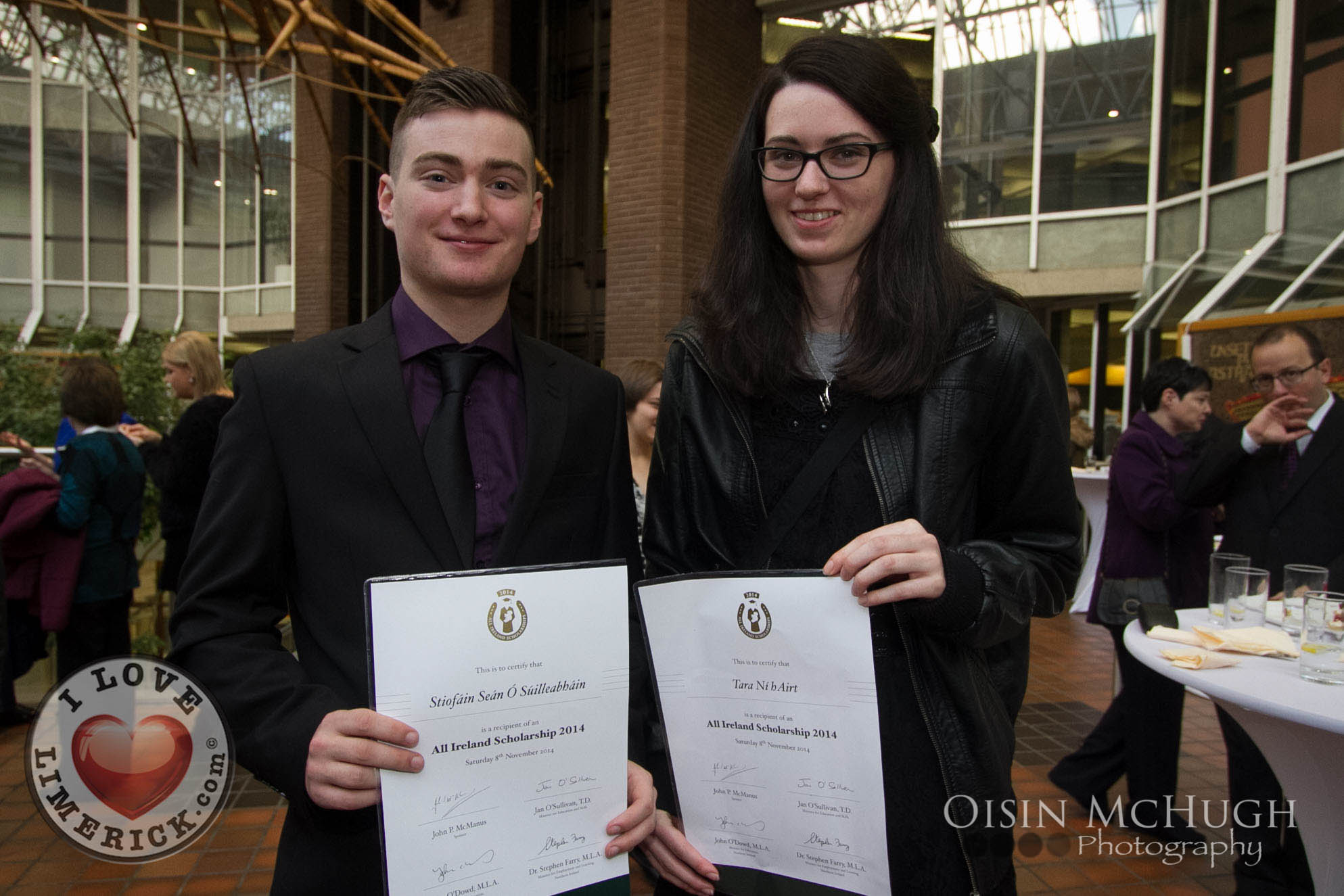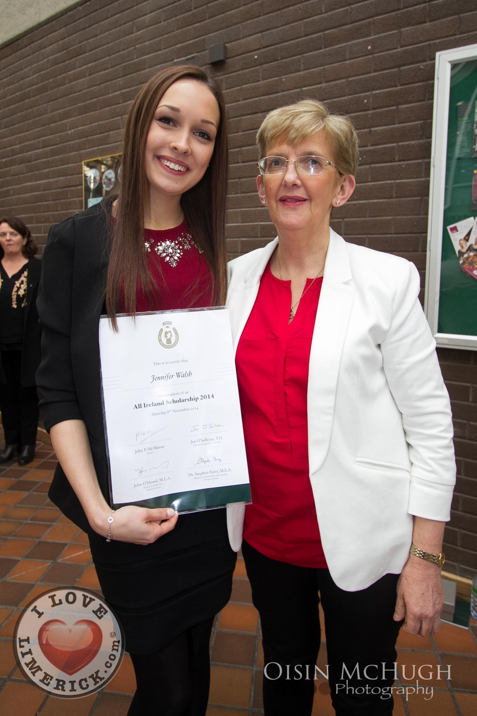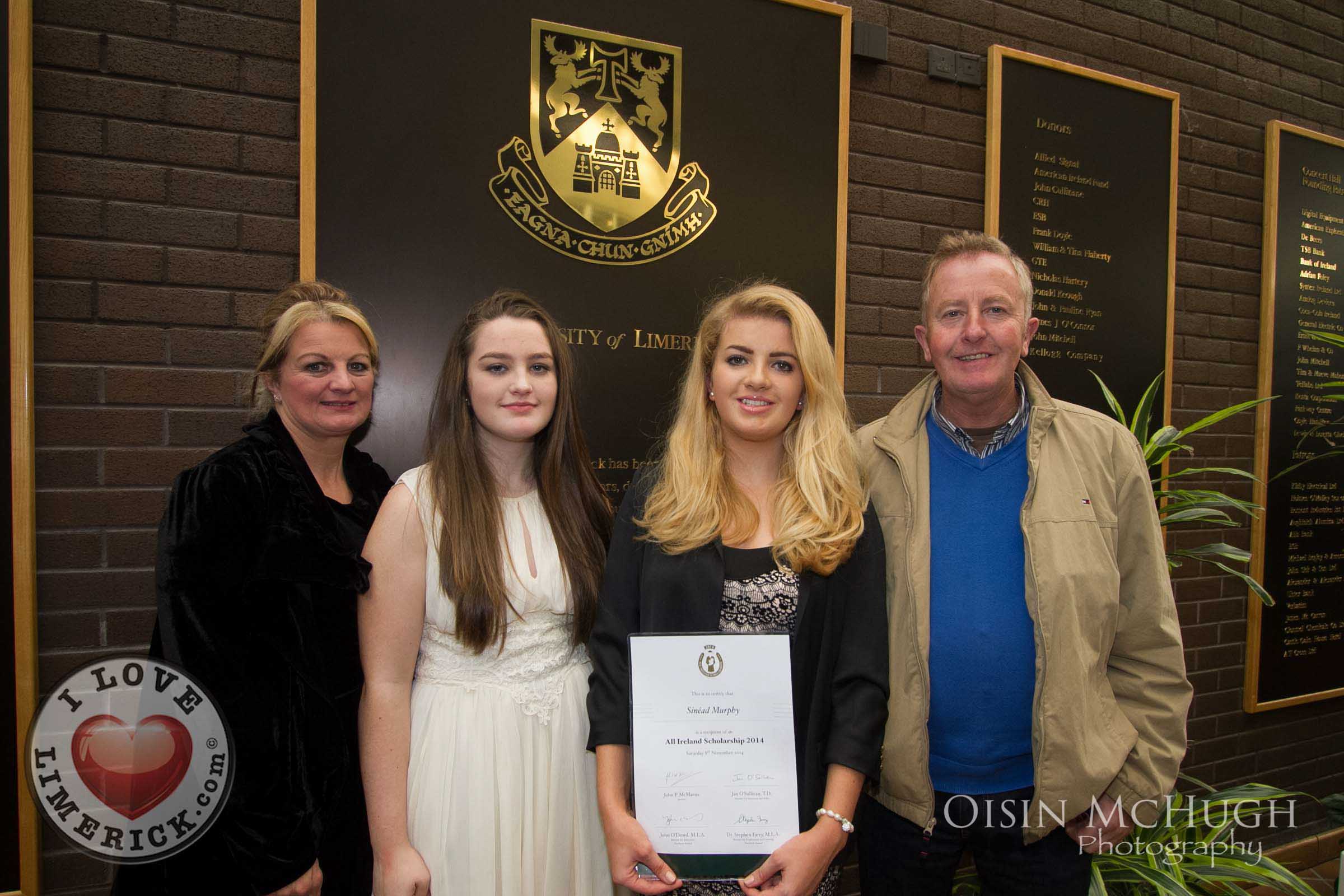 Winners of the 2014 All Ireland Scholarships were officially recognised by the Republic of Ireland Soccer Manager, Martin O’Neill and the Minister for Education & Skills, Jan O’Sullivan TD, at an awards ceremony today Saturday 8th November, 2014 at the University of Limerick. Jan O’Sullivan TD and the Minister for Employment and Learning, Northern Ireland, Dr Stephen Farry presented 126 highly talented students from the North and South with a third-level scholarship award.