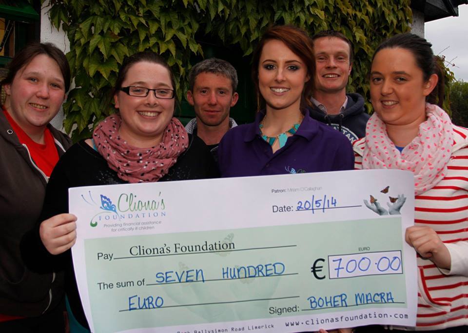 The County Limerick village of Boher, rallied around once more to raise funds for Cliona’s Foundation, a charity which provides financial assistance to families with critically ill children and for whom the community have deep affection. The Boher Macra na Feirme held their second annual table quiz in Hanley’s of Boher on May 2nd and raised a generous sum of €700 for the Foundation.