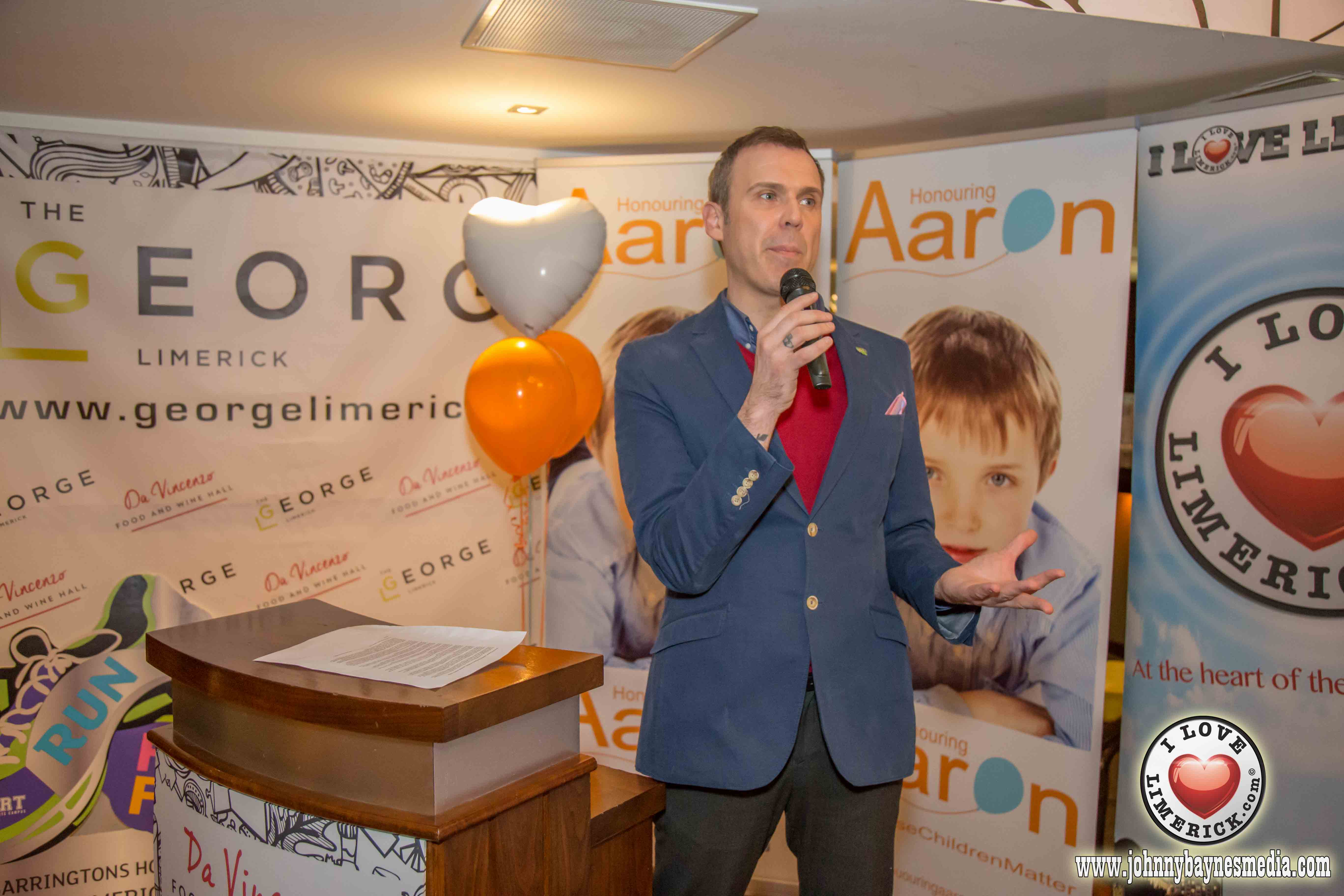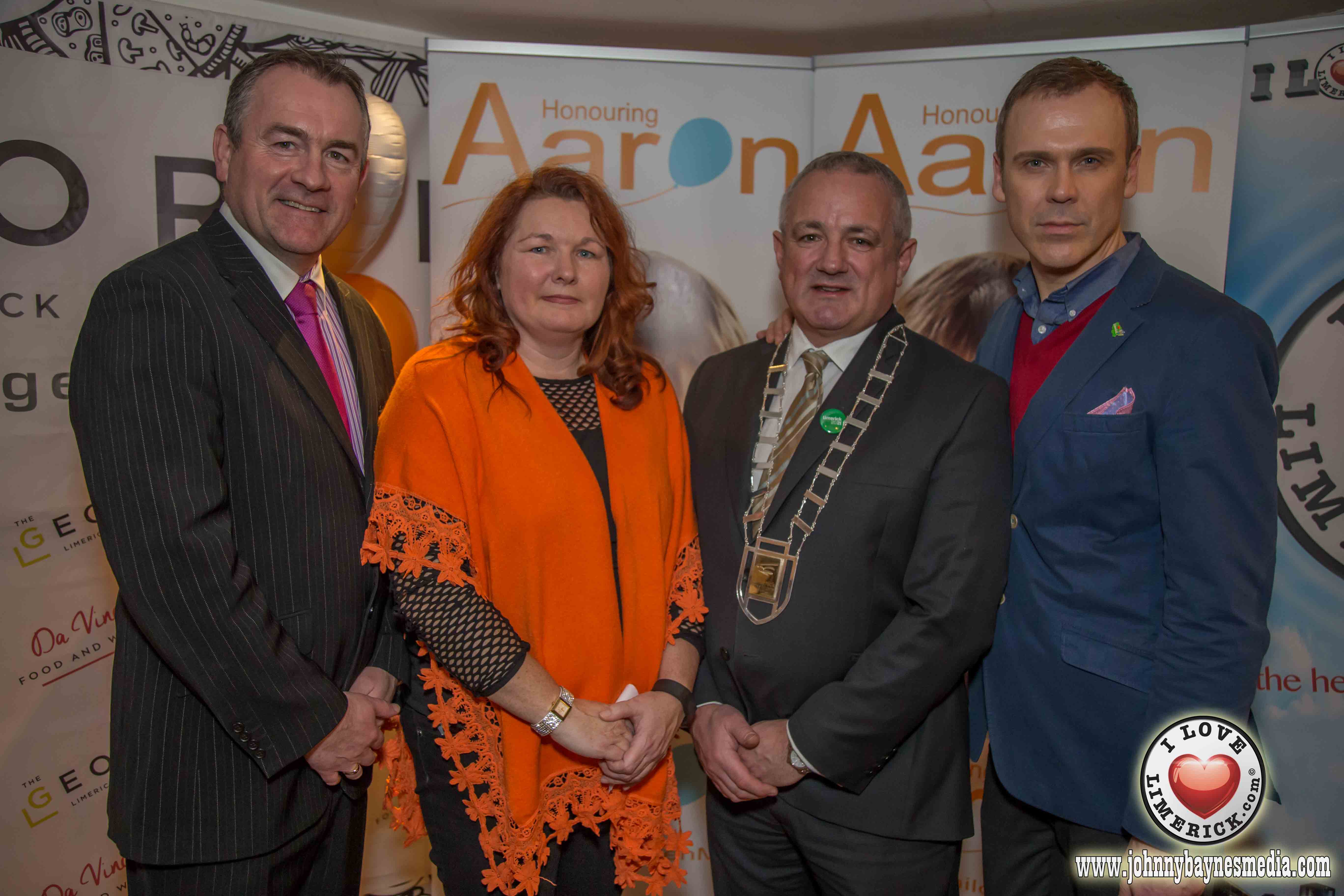 At the launch of Honouring Aaron in the George Boutique Hotel in Limerick, it was announced that Temple Street will remain as the main beneficiary of Honouring Aaron for 2016 along with three Limerick based charities; The Blue Box, Ian’s Trust and Sophie’s Journey Foundation, each benefiting from the upcoming year’s fundraisers.
