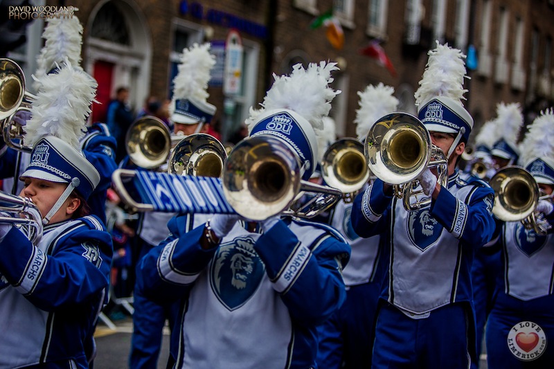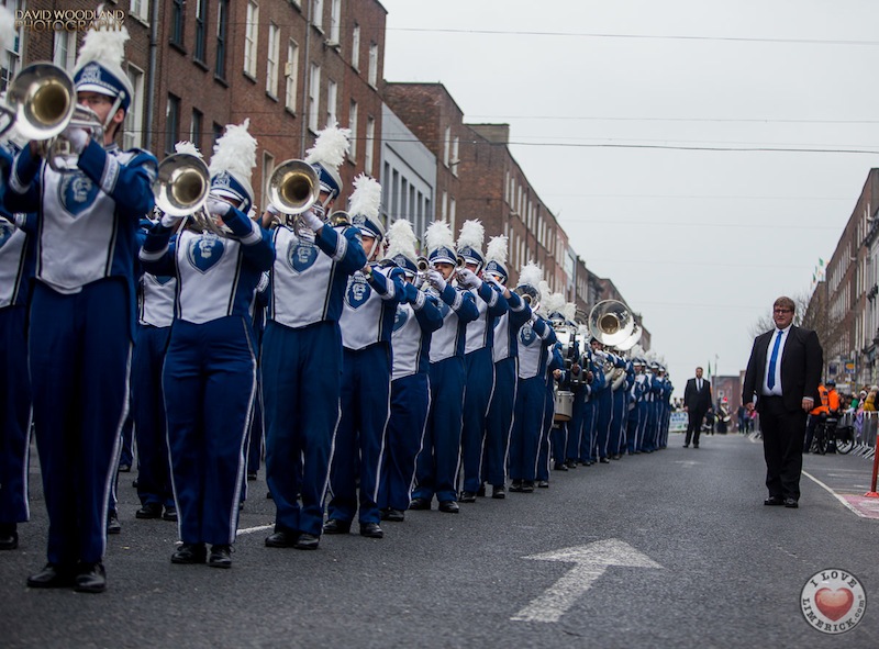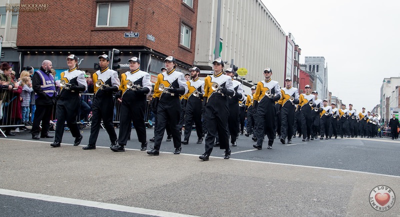 A total of 1,200 musicians took part in the event which saw 18 groups from the USA, Northern Ireland, Kerry, Limerick, Westmeath, Donegal, Dublin, Tipperary and Cork parade from Pery Square and down O’Connell Street to Arthur’s Quay in Limerick city centre. University of Missouri Band