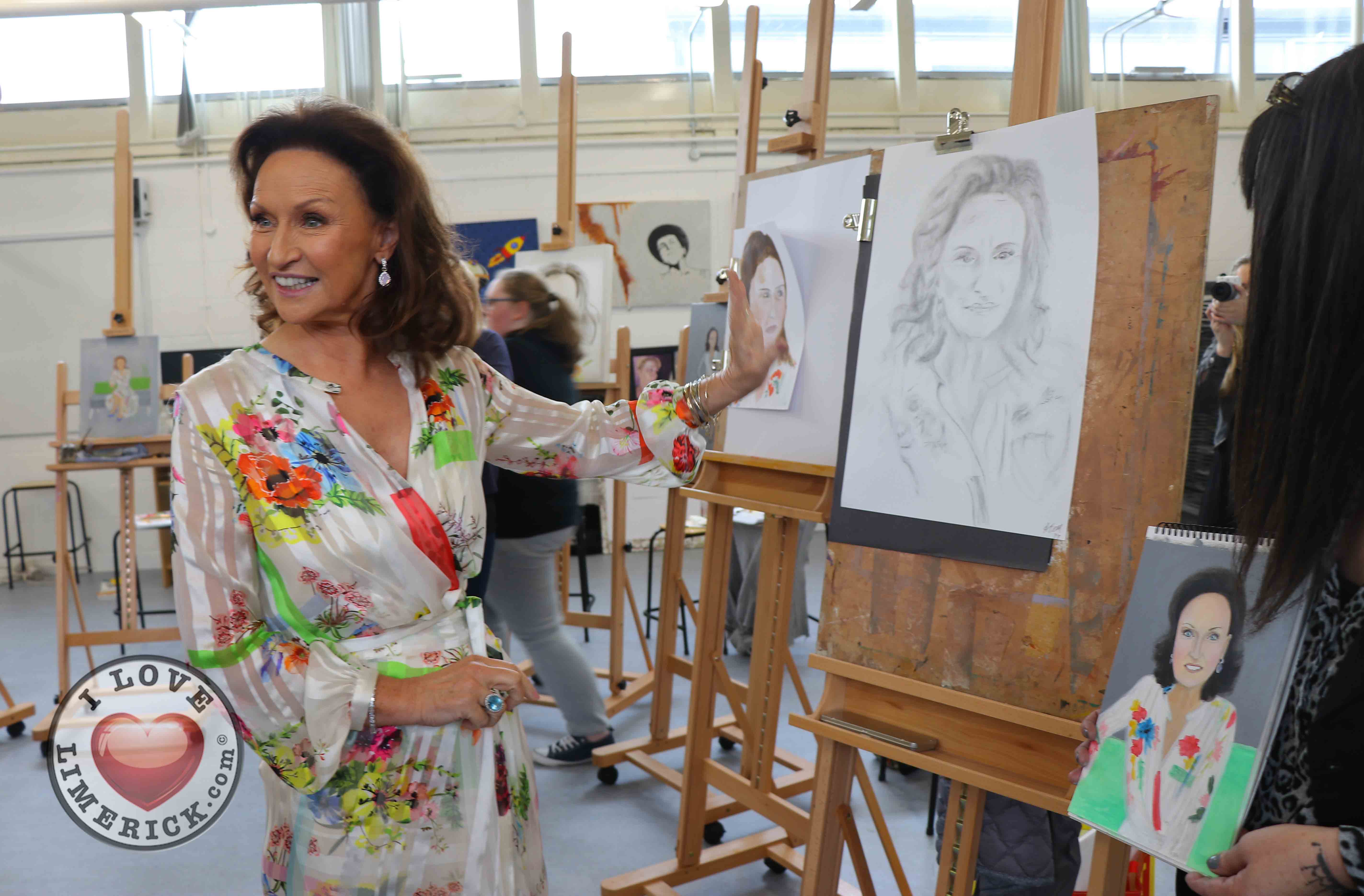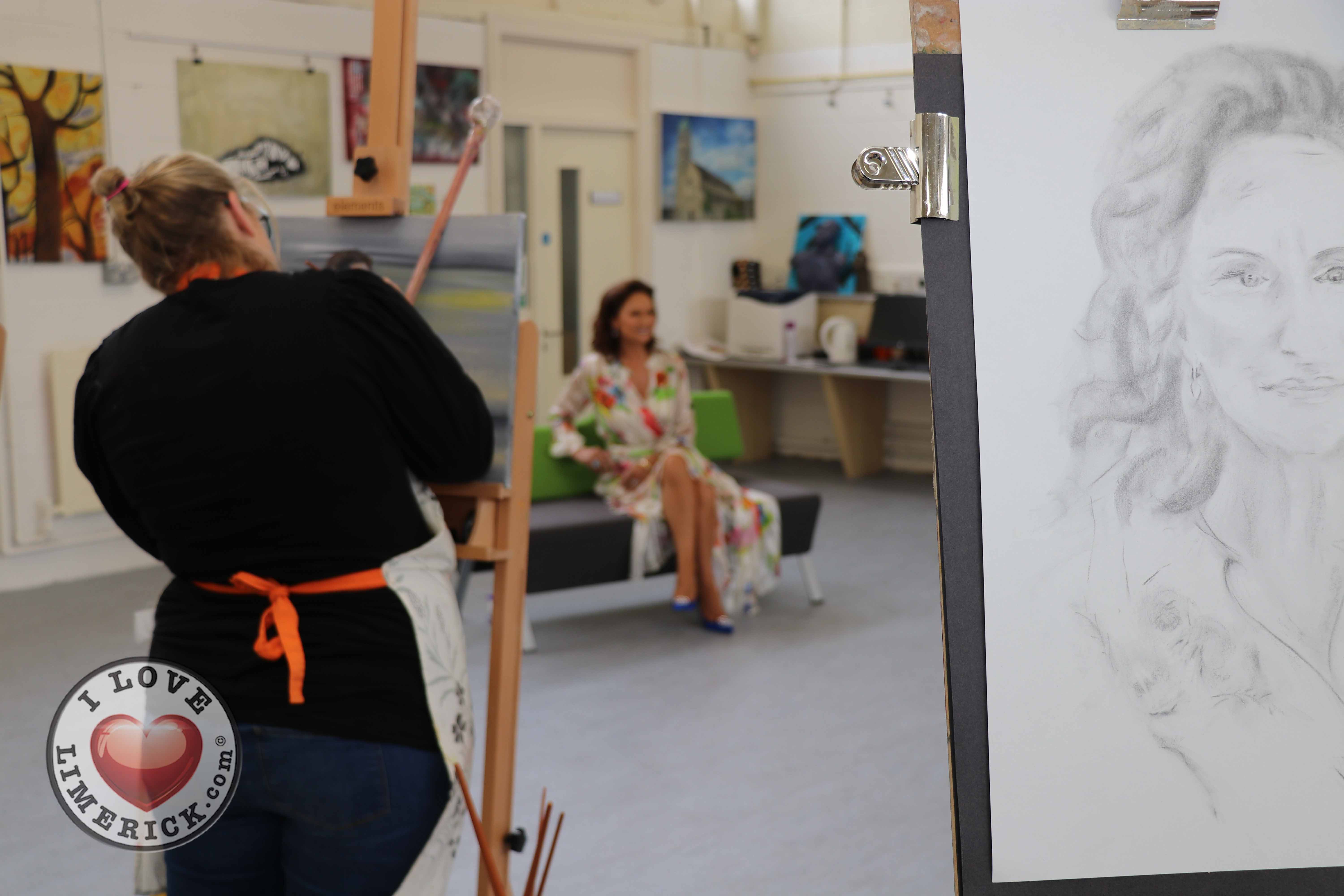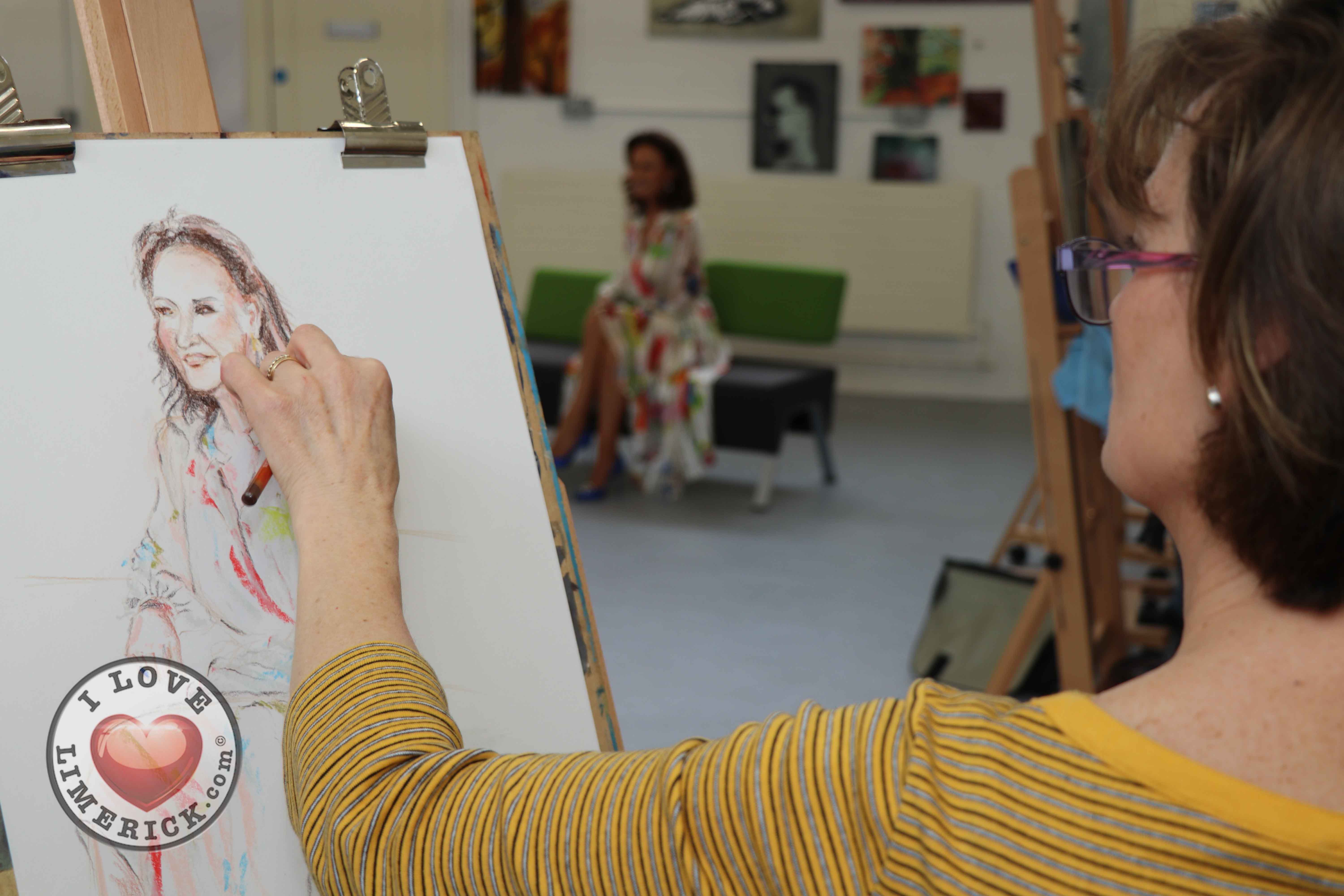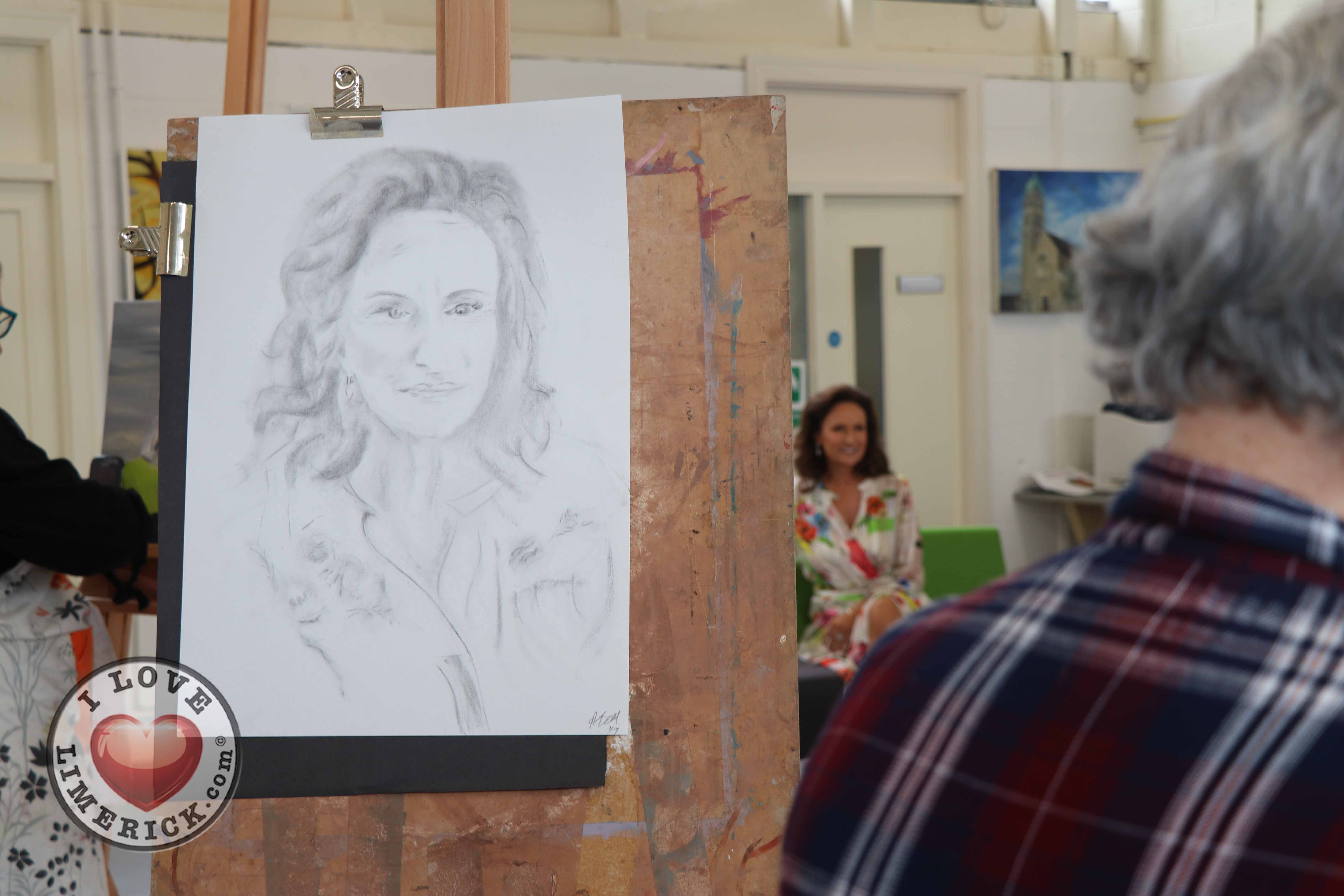 Jayne Foley who teaches the Art, Craft, Design class said, ‘The Portrait Artist Festival gave students of the Art, Craft, Design class and members of the public an opportunity to create a portrait of Irish model, fashion stylist and television presenter, Celia Holman Lee. Celia was so much fun and so enthusiastic and kind to the artists. What a lady!”