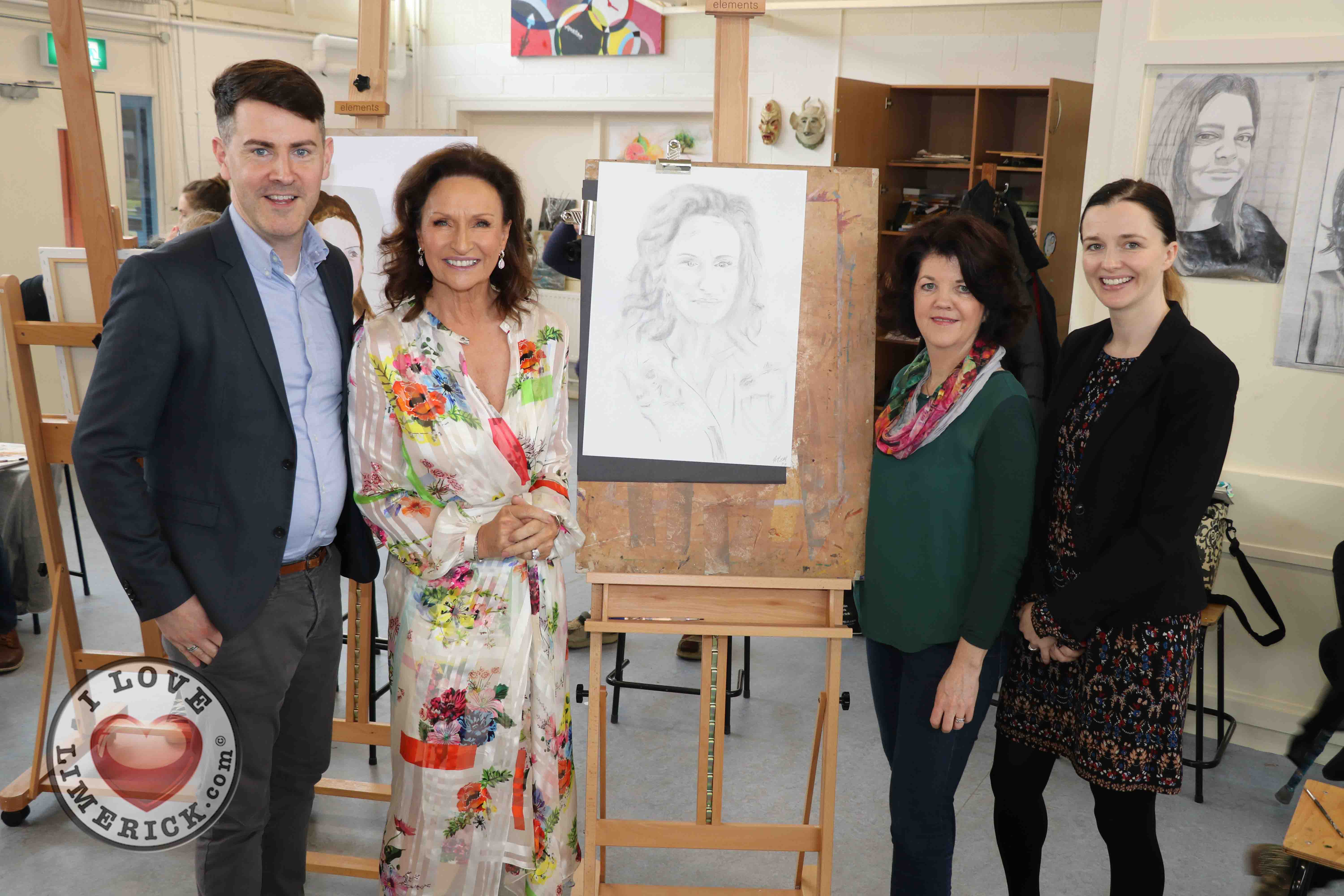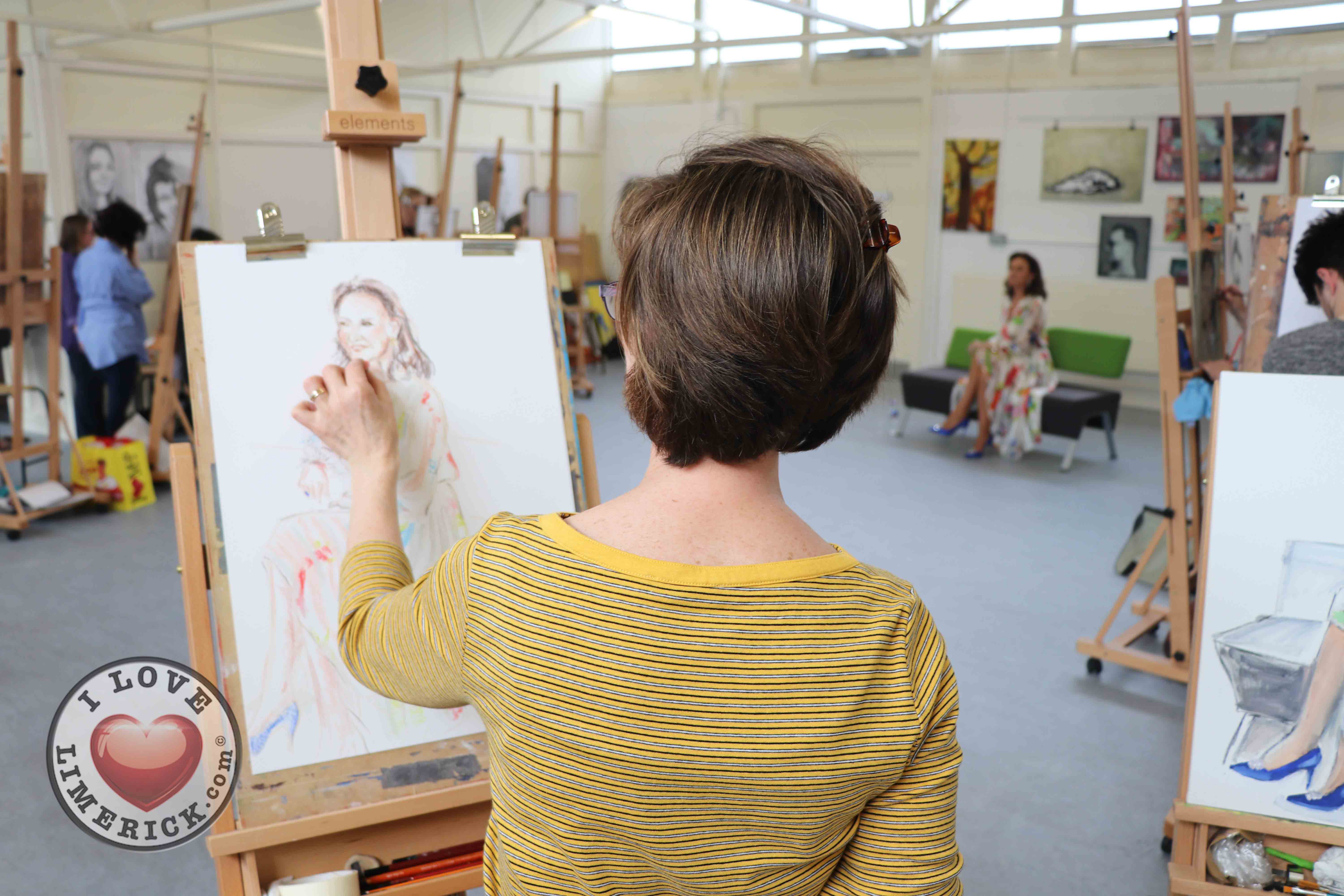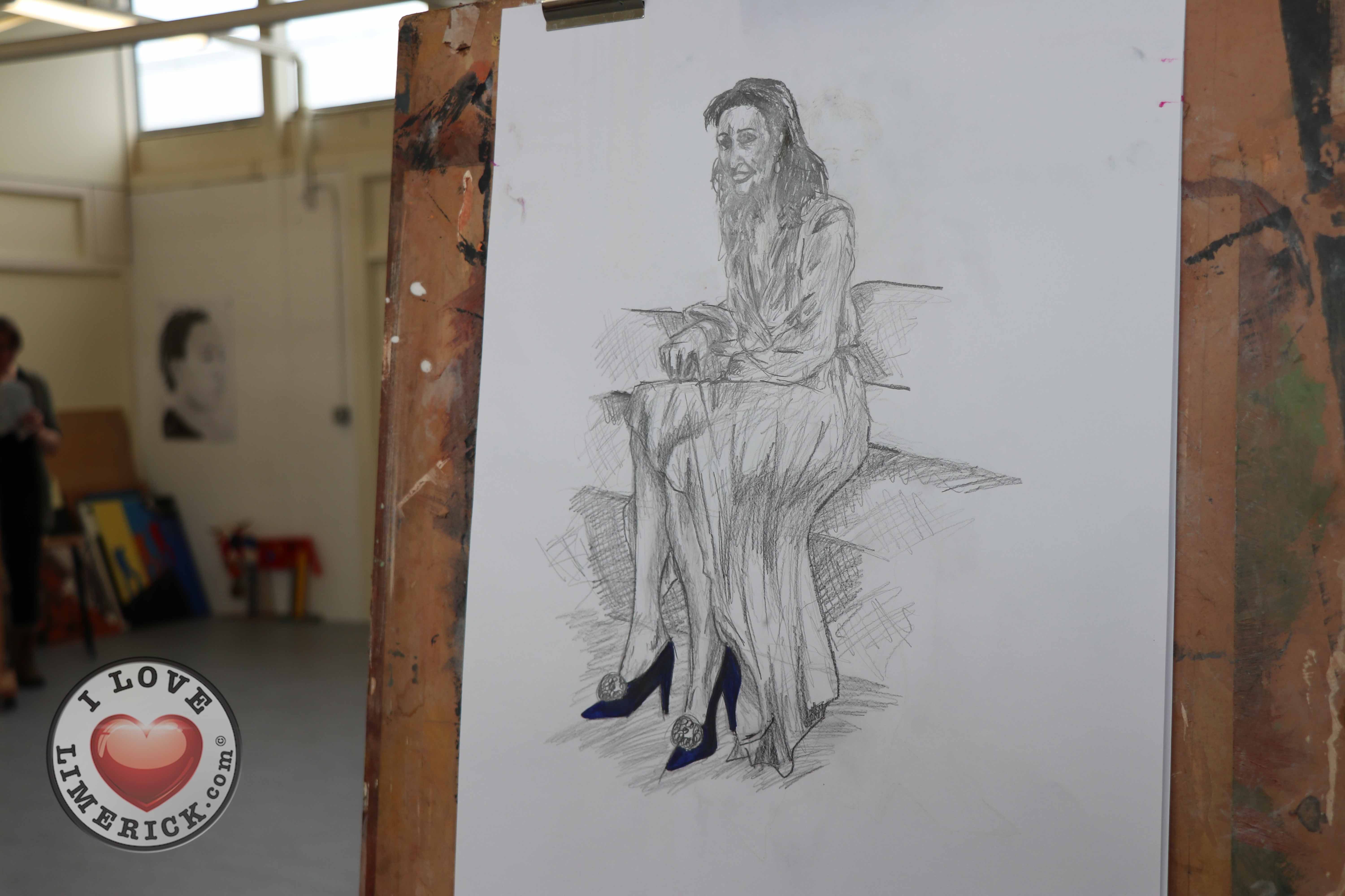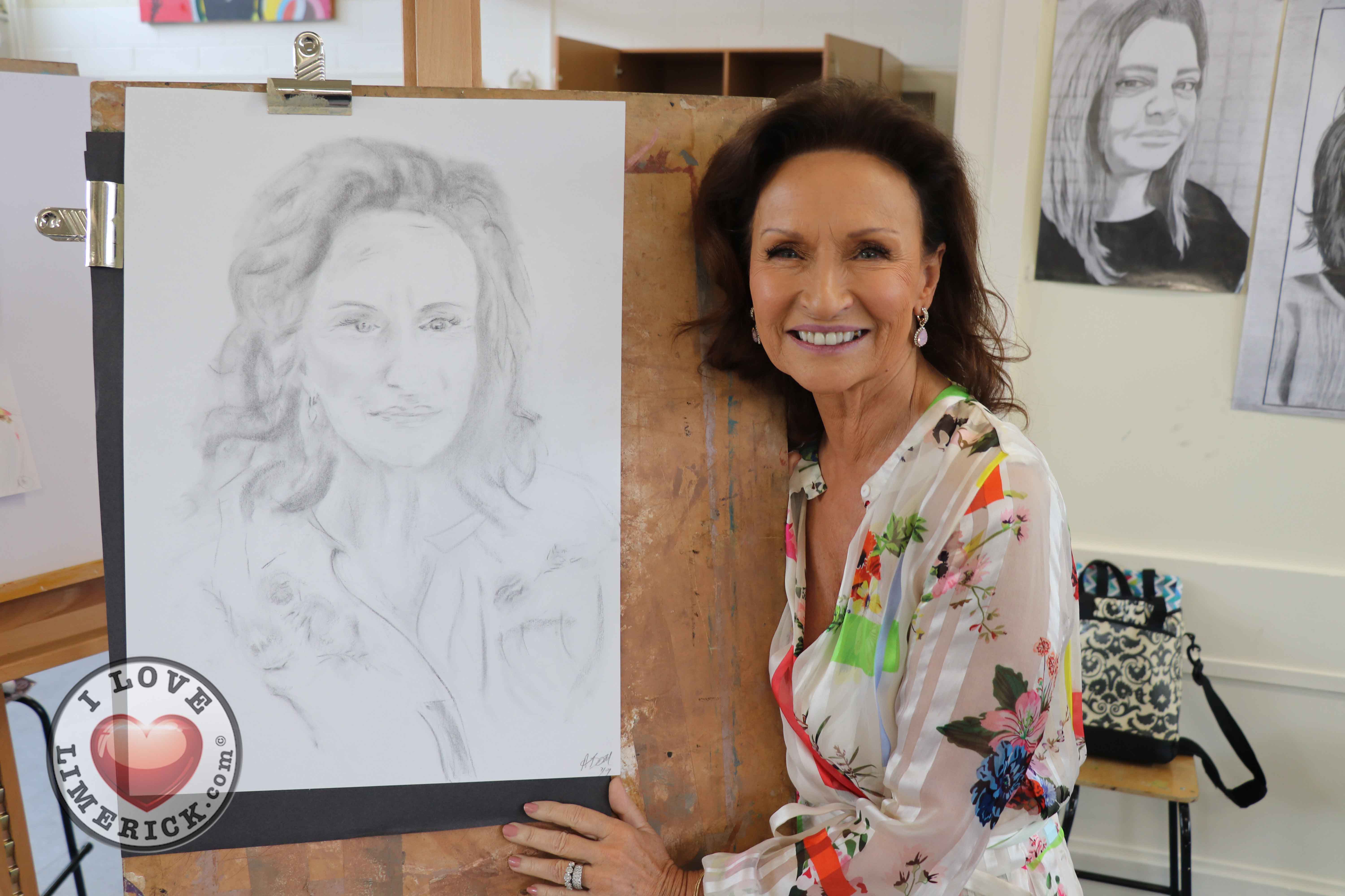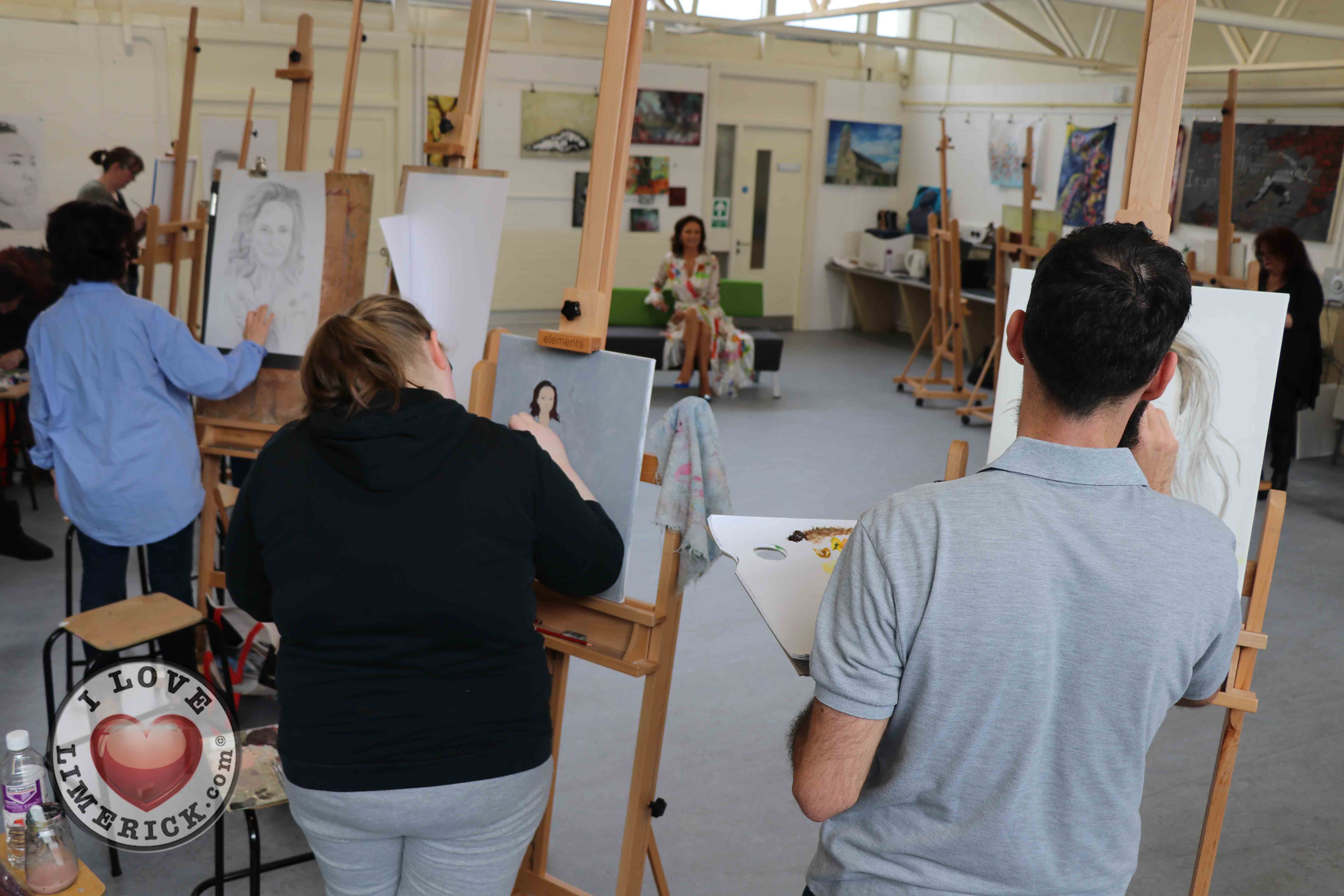 Jayne Foley who teaches the Art, Craft, Design class said, ‘The Portrait Artist Festival gave students of the Art, Craft, Design class and members of the public an opportunity to create a portrait of Irish model, fashion stylist and television presenter, Celia Holman Lee. Celia was so much fun and so enthusiastic and kind to the artists. What a lady!”