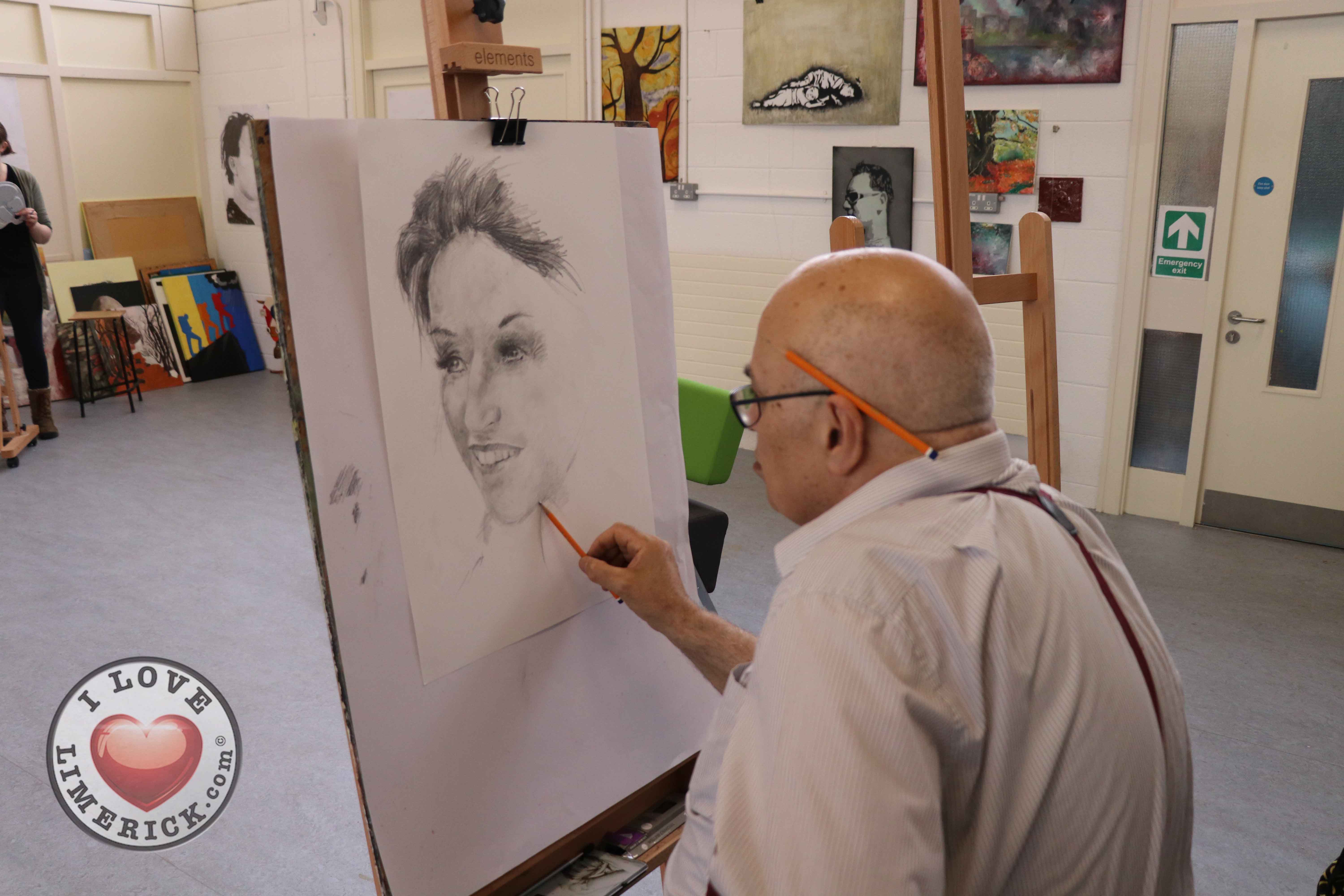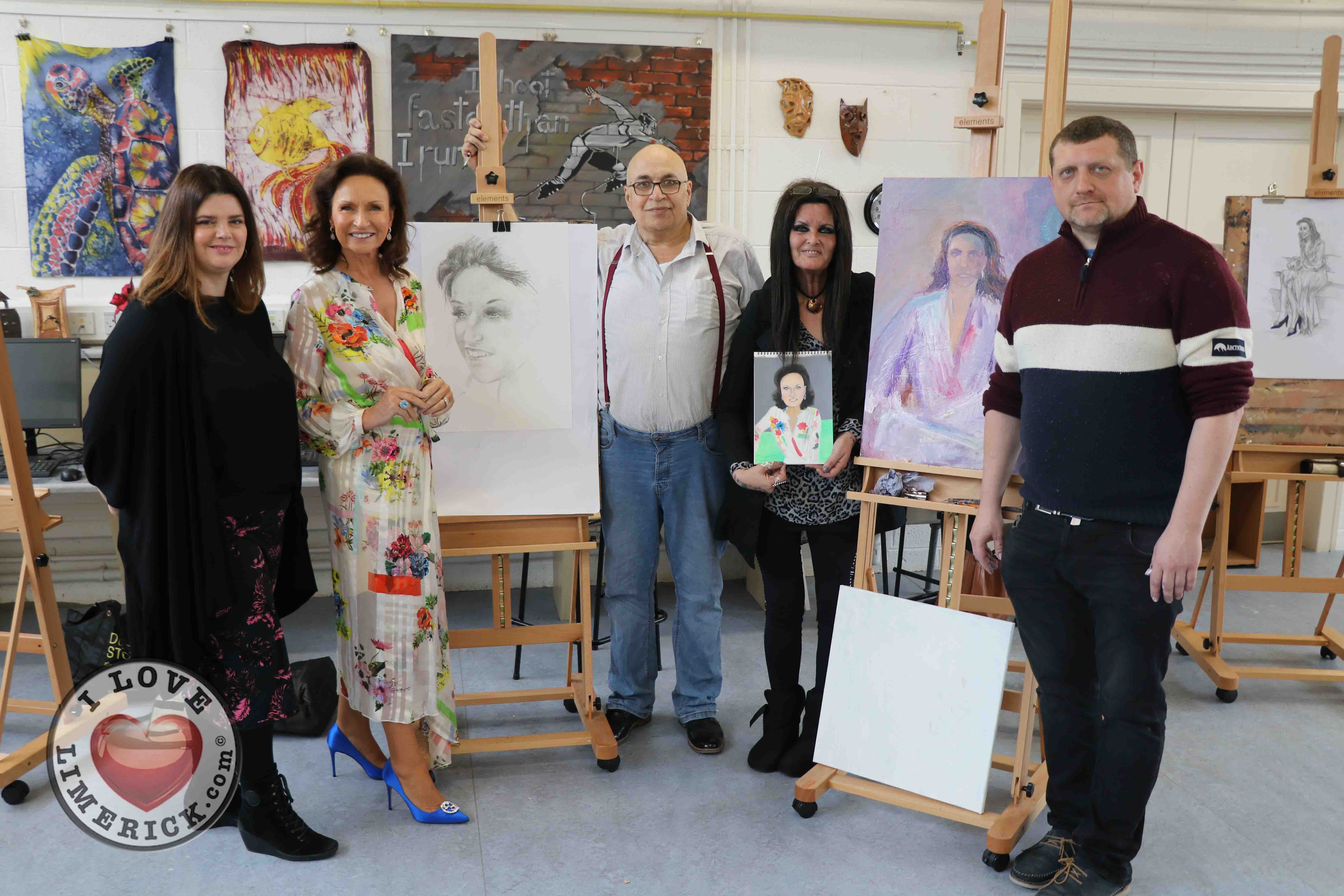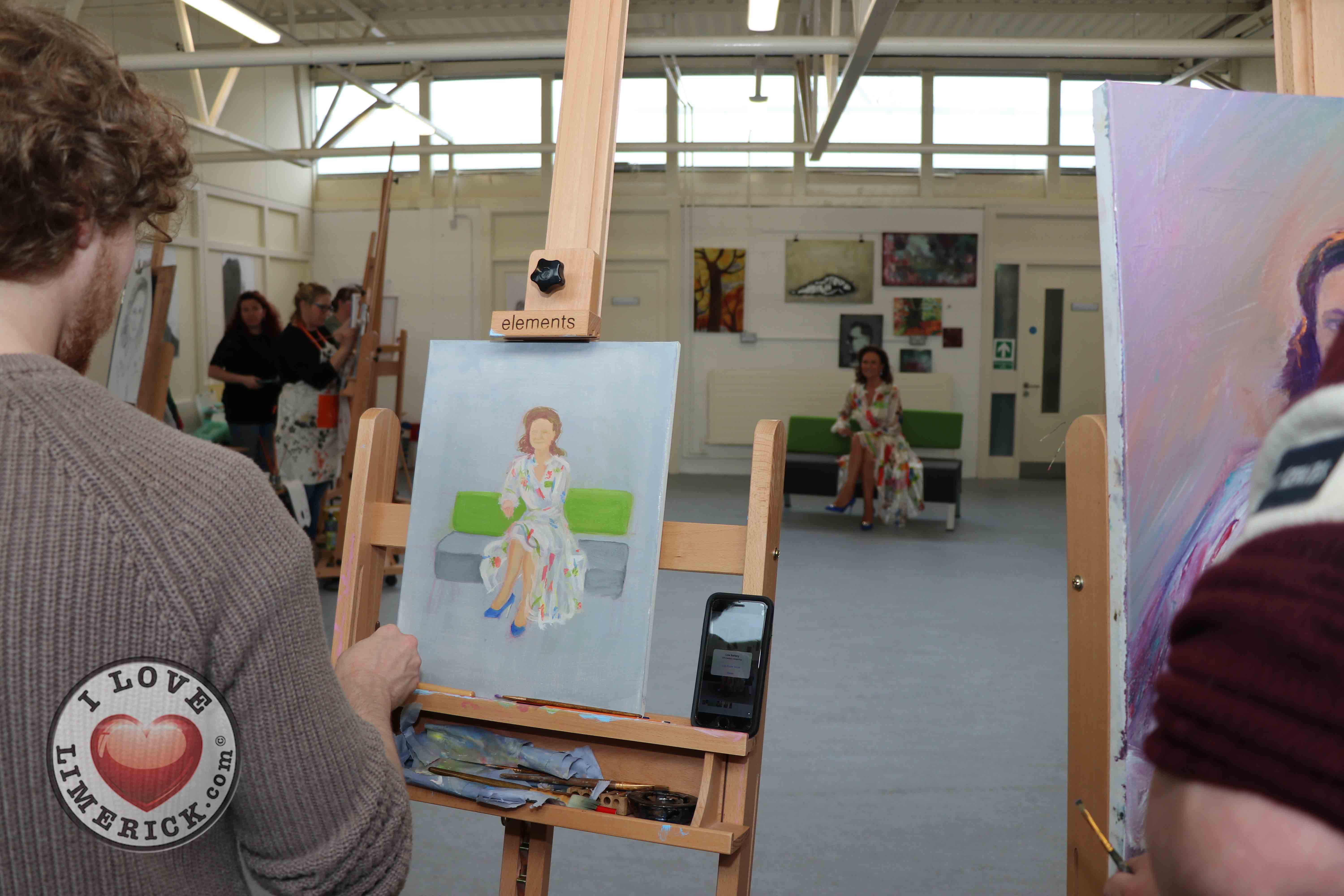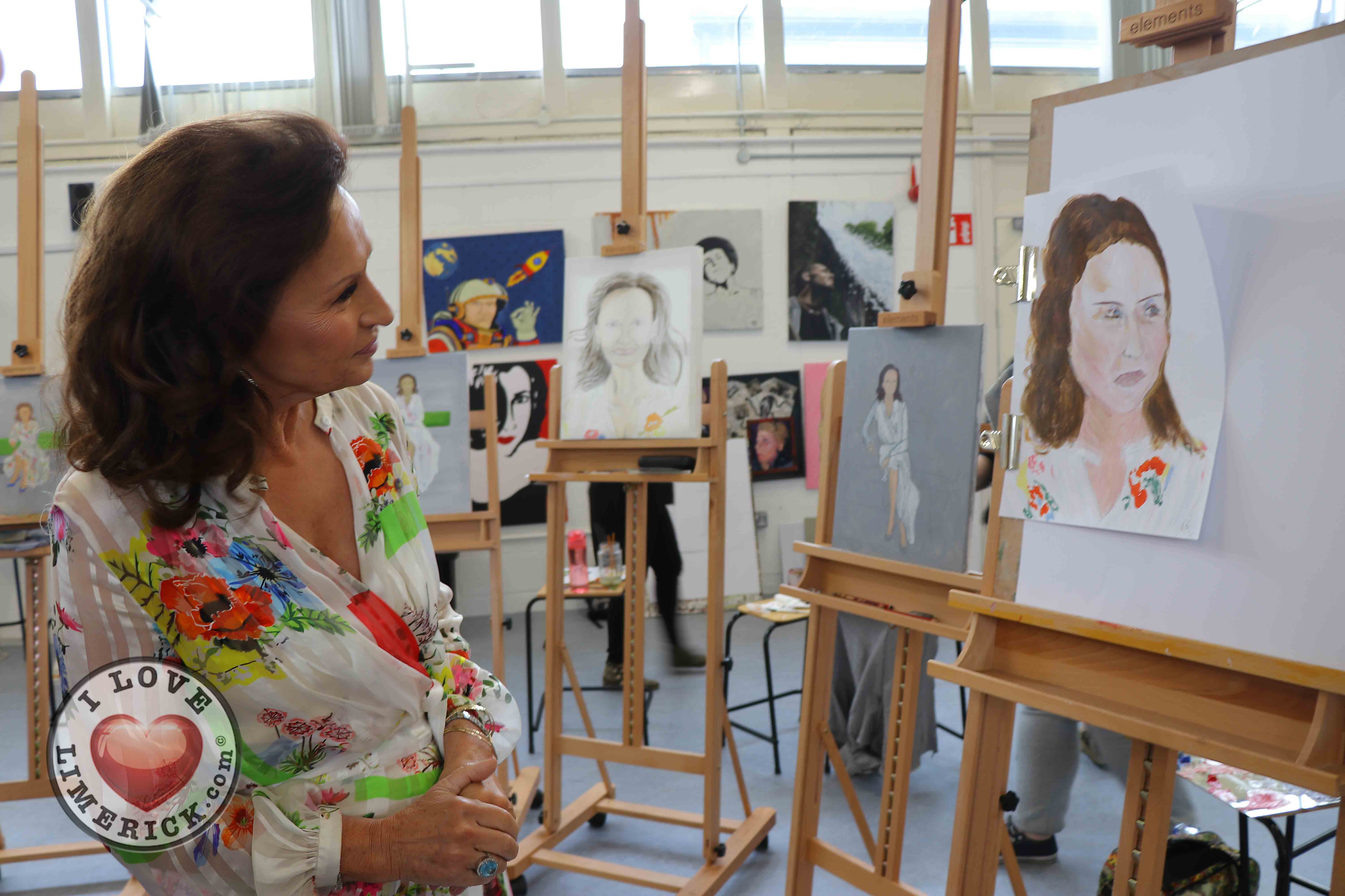 Jayne Foley who teaches the Art, Craft, Design class said, ‘The Portrait Artist Festival gave students of the Art, Craft, Design class and members of the public an opportunity to create a portrait of Irish model, fashion stylist and television presenter, Celia Holman Lee. Celia was so much fun and so enthusiastic and kind to the artists. What a lady!”