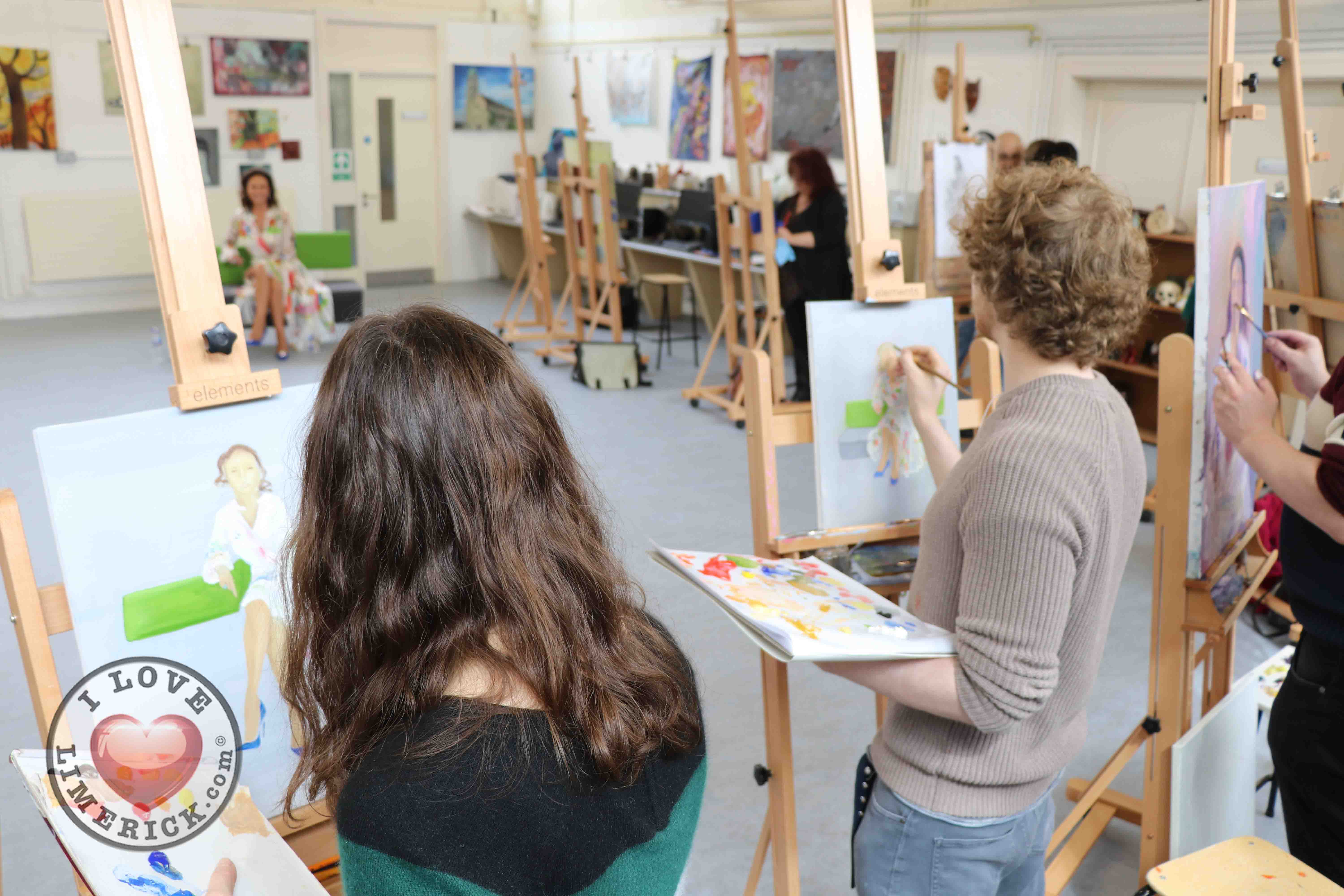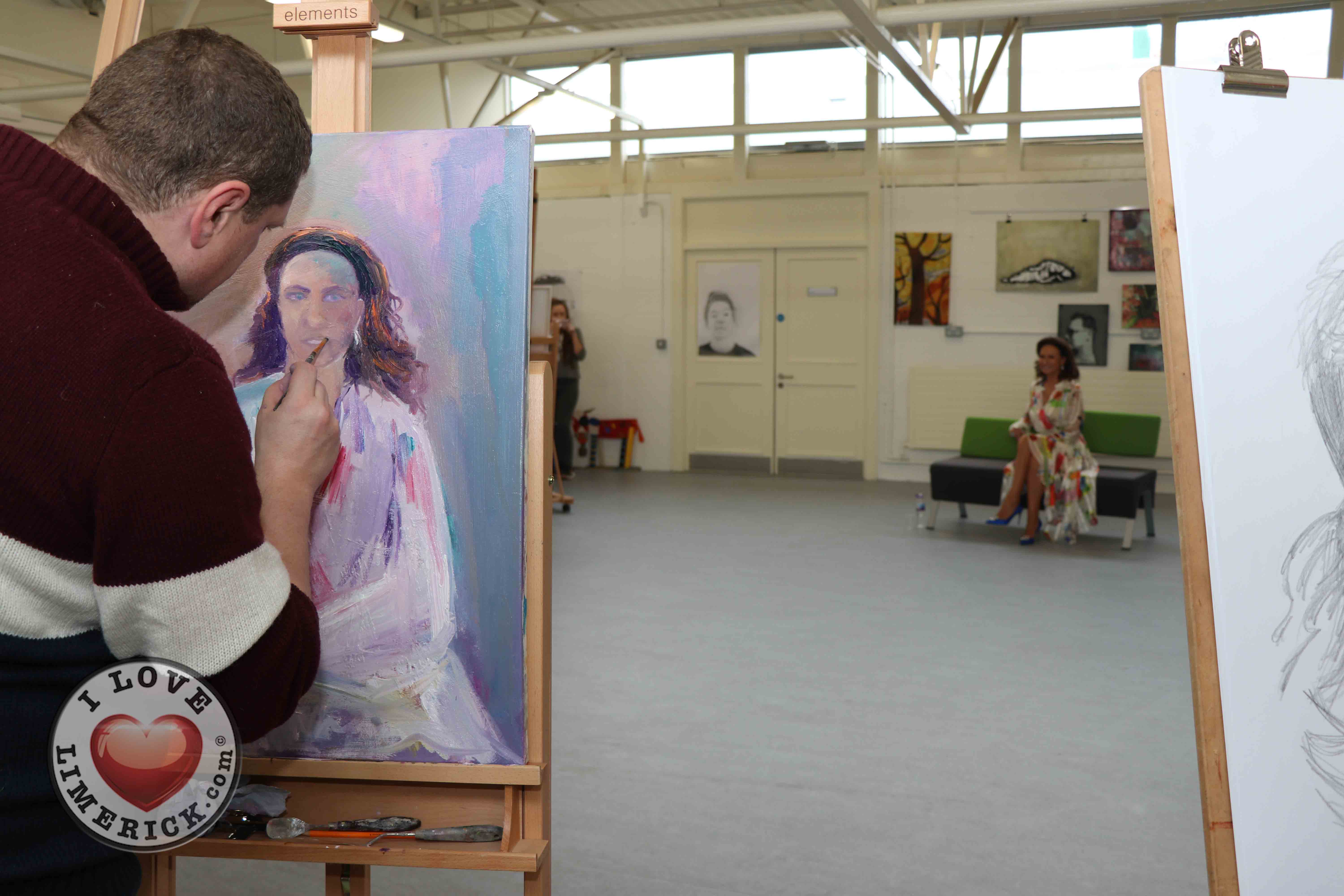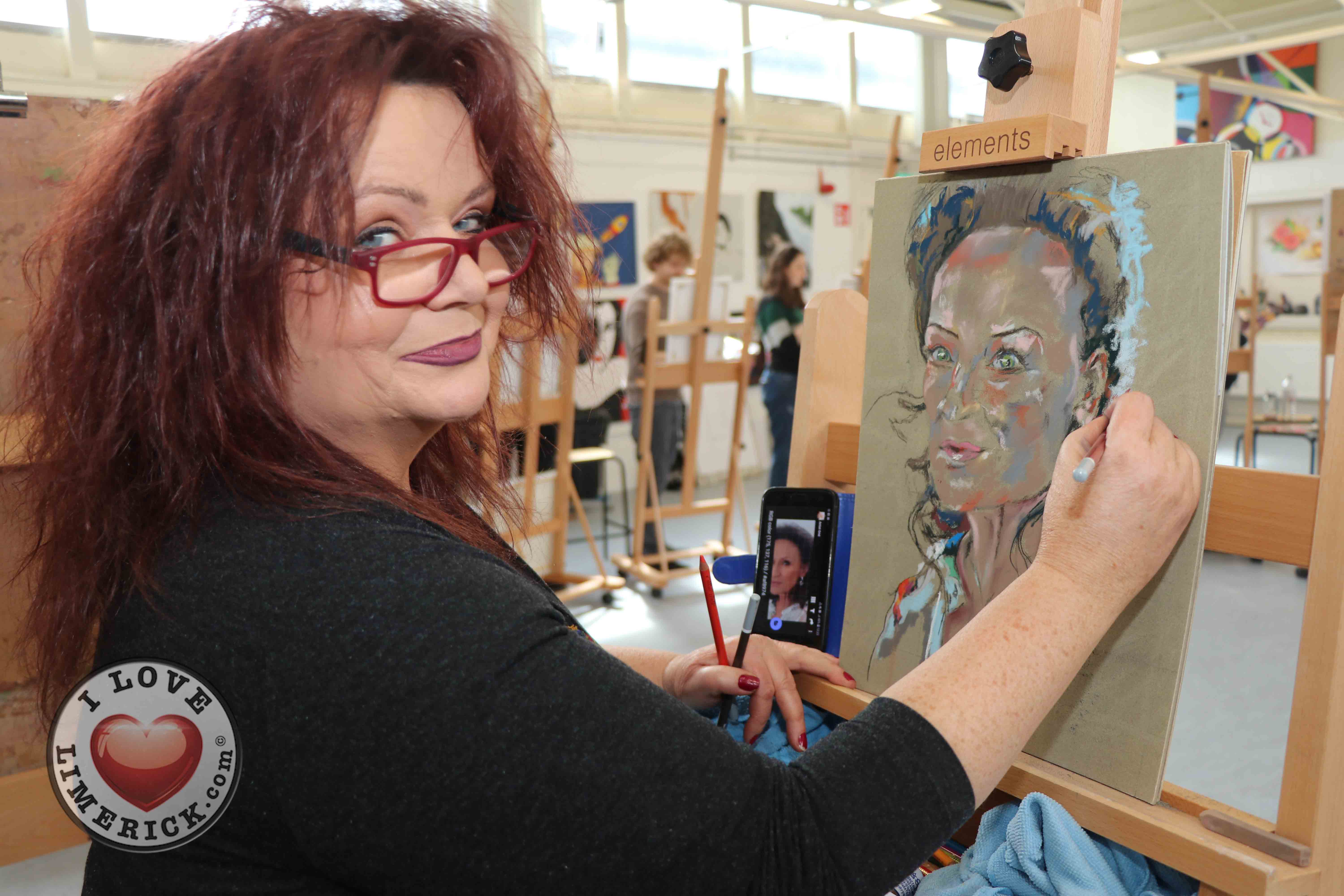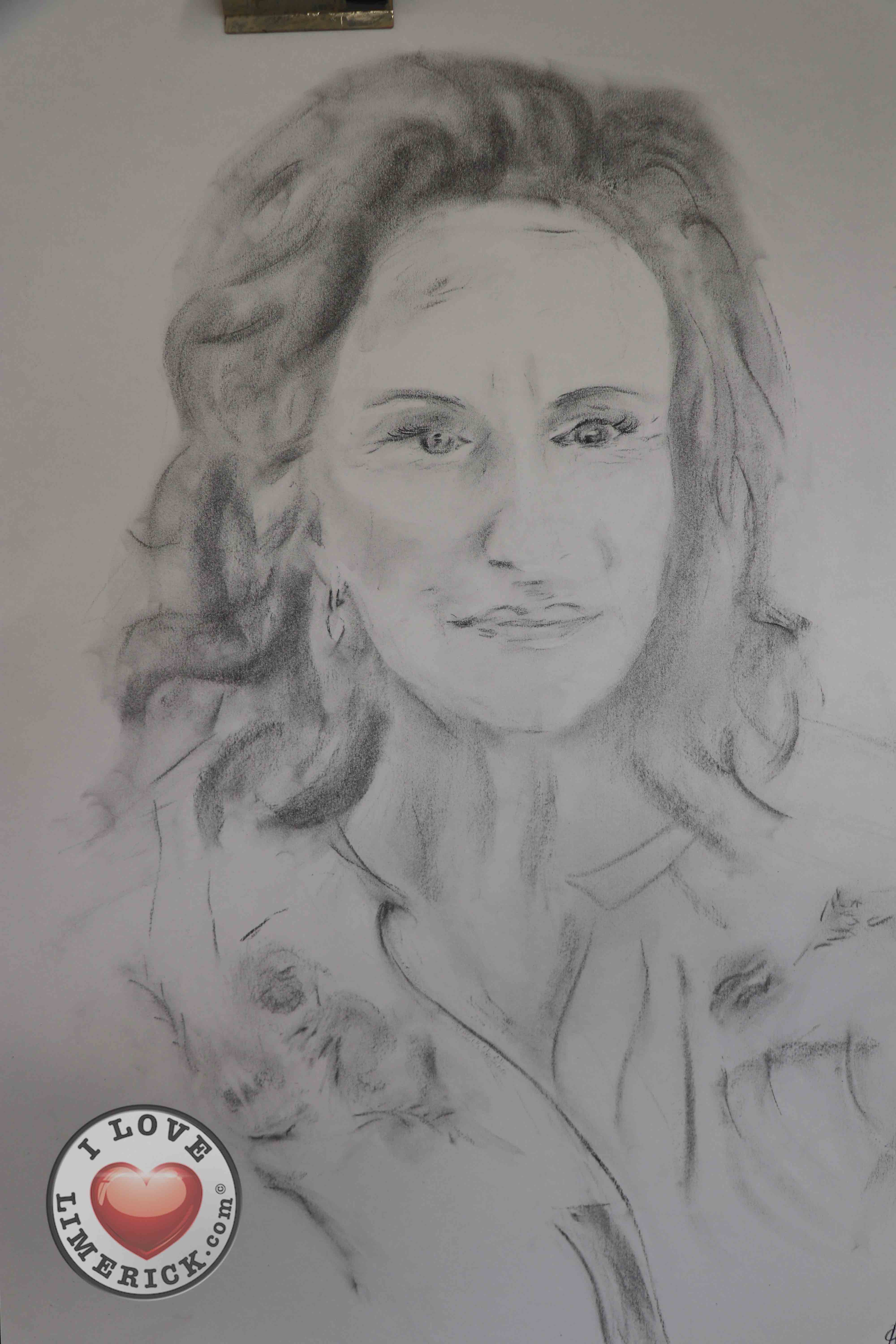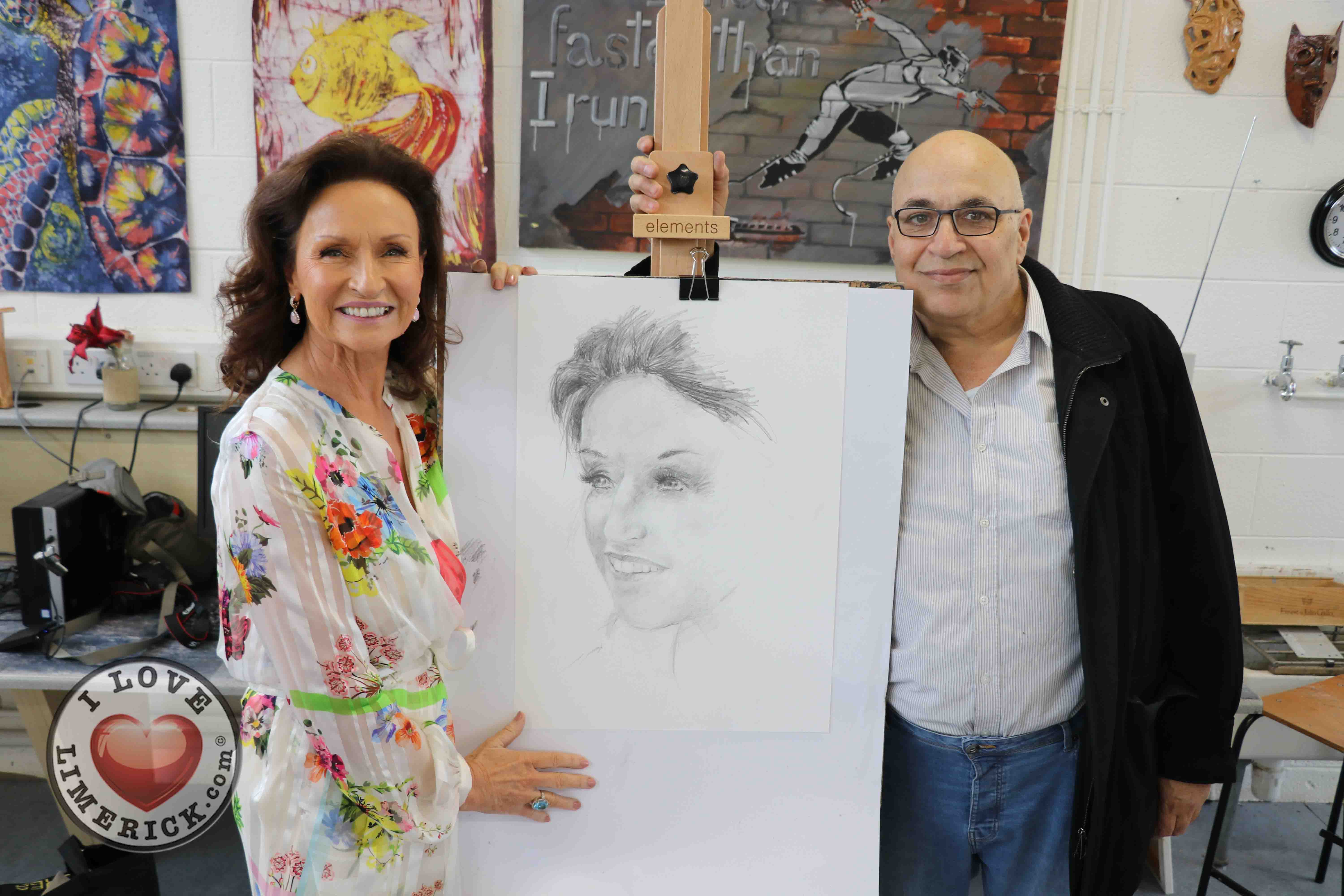 Jayne Foley who teaches the Art, Craft, Design class said, ‘The Portrait Artist Festival gave students of the Art, Craft, Design class and members of the public an opportunity to create a portrait of Irish model, fashion stylist and television presenter, Celia Holman Lee. Celia was so much fun and so enthusiastic and kind to the artists. What a lady!”